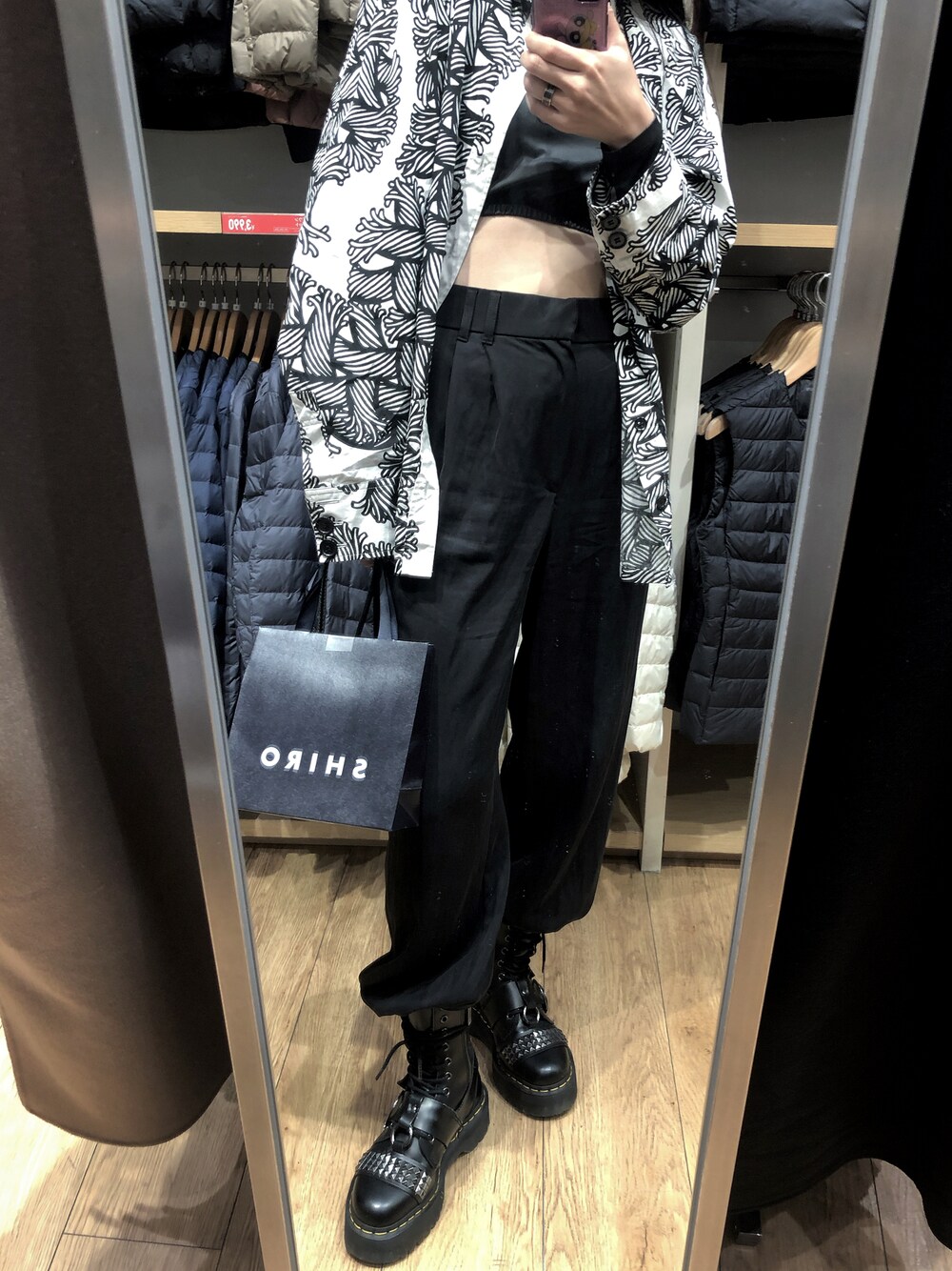 安定のモノトーン⬛️⬜️ 全体的にゆるっとしててお気に入りです nemethのシャツと厚底マーチン可愛い◎