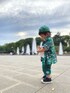 秋晴れ☺️ 動物園コーデは全身グリーンで😎🟢 旦那にピーターパンと言われた今日この頃🍵 1Y8M