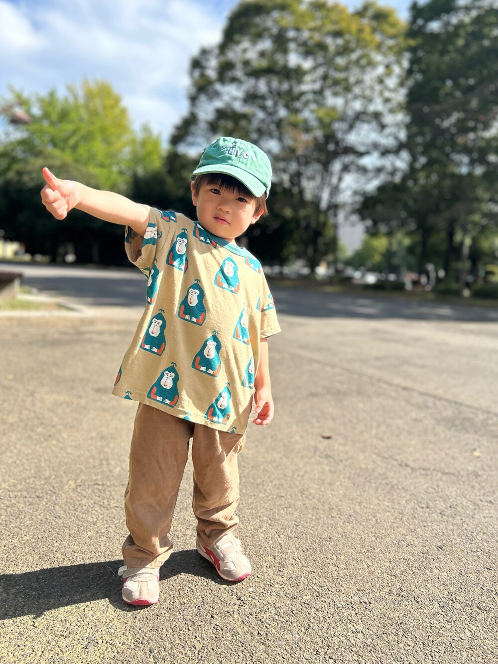 🦍かわいい♡来年も着れるといいな。 最近寒暖差激しい。。