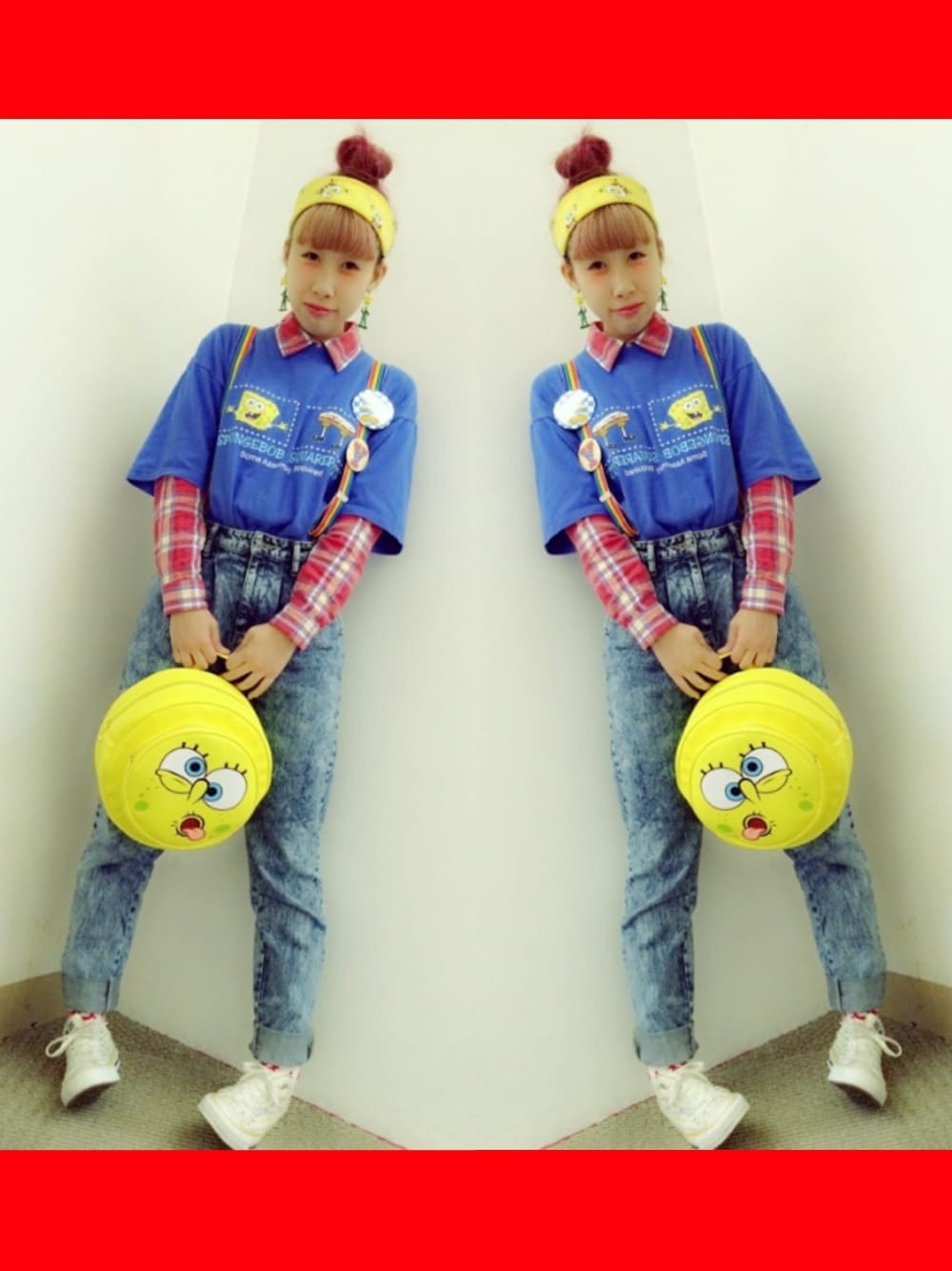 bandana:used earring:Disney tops:used suspender:SPINNS shoes:CONVERSE 大好きなスポンジボブコーデ🙋💓