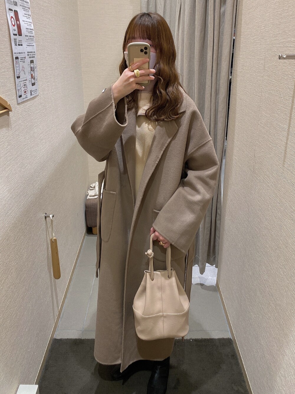 こういう形の色のコート欲しかった🤎 めちゃドタイプのコート🤎 中のニットも変わった形でかわいすぎ🤎