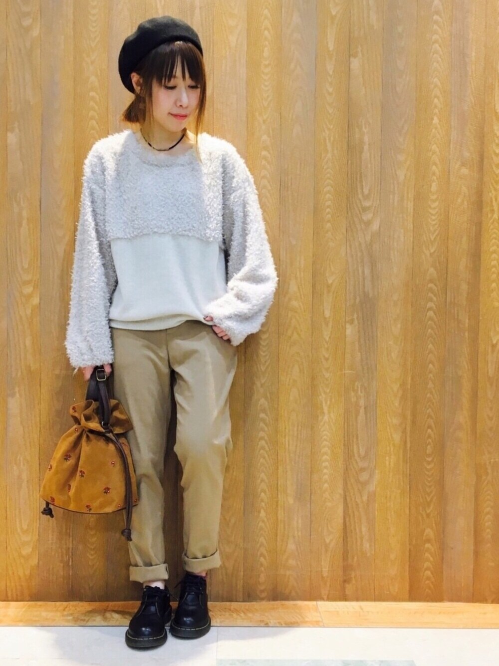 こんばんは ⚐ 家を出て数時間後に急に、 「玄関の鍵しめたっけ?!!」 「コンセント抜いたっけ?!!?」 「電気消したっけ??!!!?」 と時間差で不安が襲ってくる時ありますか?私は100万回あります。 最終的には、 「トイレ流したっけ??!!??!」 まで辿り着いて、落ち着きます。 (ちゃんとトイレ流してますので、嫌いにならないで) 今日のコーディネートです! ボア切り替えカットソー、Cutieの毎年定番アイテムですが、今年の商品は袖の先までボアがみっちり、です。 この、袖のもふっとした感じがとても可愛いです。 私がきているのは、アイボリー。 その他に、ブラウン、グレー、パープルがあります。 どの色も可愛いです♡ 同系色のパンツと合わせて、小物は黒で引き締めてます。 着用size カットソー:M パンツ:SS(オンラインストア限定サイズ) 出勤したままのコーディネートでした。 最後まで読んでくれて、ありがとうございます。