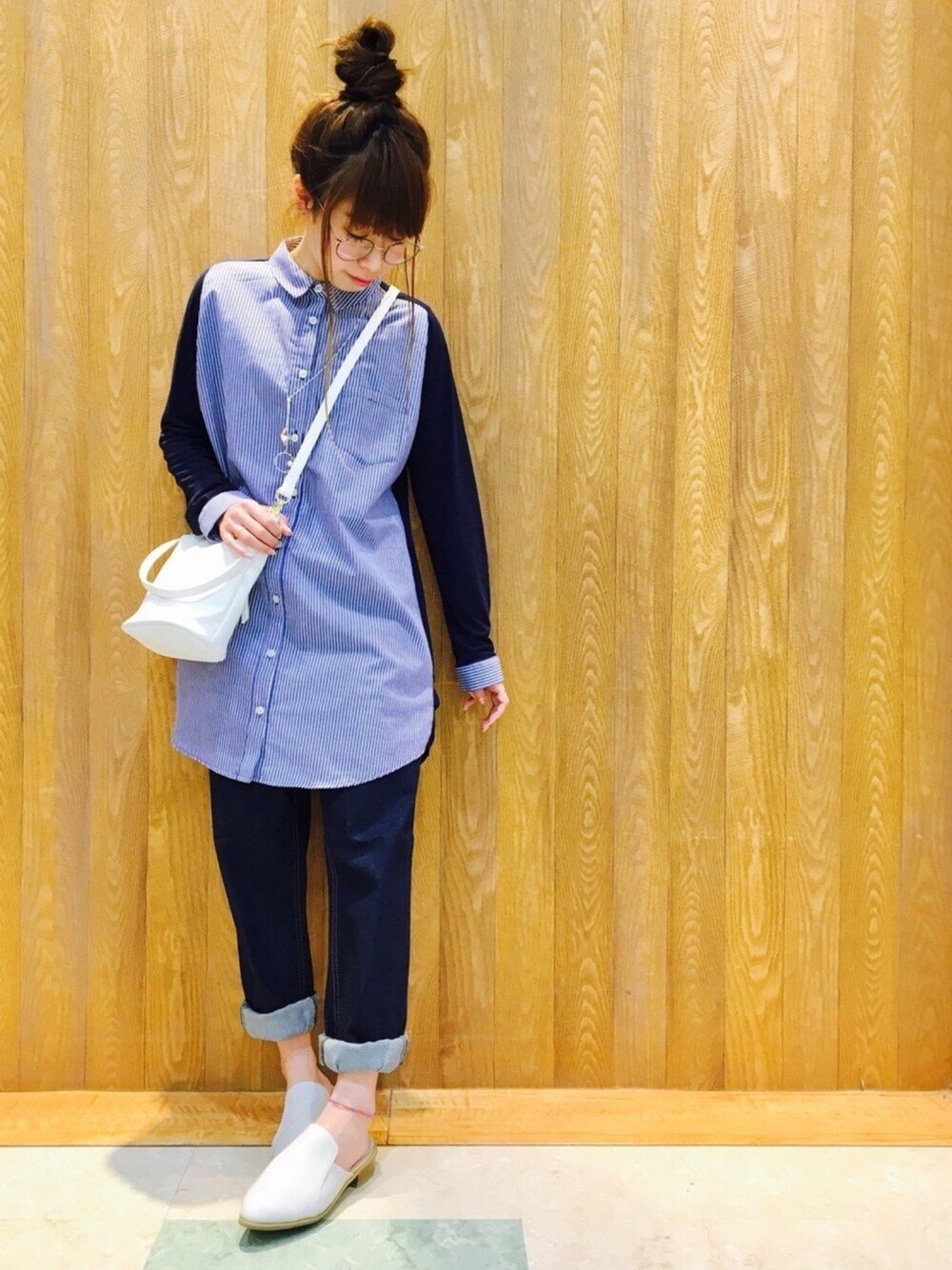 こんにちは! 先日お気に入りのリュックの中で、ドデカミンストロングが溢れていました。 実を言うとこれでドデカミンストロングがリュックの中で溢れていたのは2度目です。 ドデカミンストロングとは、熟、相性が悪いようです。 1度目の時に「ドデカミンストロング、一生飲まない」と誓ったはずなのに、忘れた頃にやってくるのが、【怪奇!】ドデカミンストロングによるお気に入りリュック殺戮事件、というわけです。 本日のコーディネートです。 袖と背中の切り替えが可愛いシャツワンピに、テーパードデニムを合わせました。 メガネにスリッパミュール、シャツのボタンを上までぴっちり締めることで、マニッシュな雰囲気にしてみました。 シャツワンピは、緩すぎないジャストな着心地で、袖と背中がジャージ素材なのが可愛いです。 シワになりやすい部分がその素材なのも助かります! テーパードデニムは、ゆったりなシルエットが可愛くて、ロールアップしてスニーカーにもサンダルにも合わせられるのが良いですよね。 もちろん、ストレッチもバッチリで履き心地も◎ 余談ですが、中高校生の時、ワイシャツのボタンを上までぴっちり締めてる男子に惹かれがちでした。笑 真面目っぽいのが好きとかじゃなく、お洒落且つ可愛く見えるんです。 わかる方いませんか?
