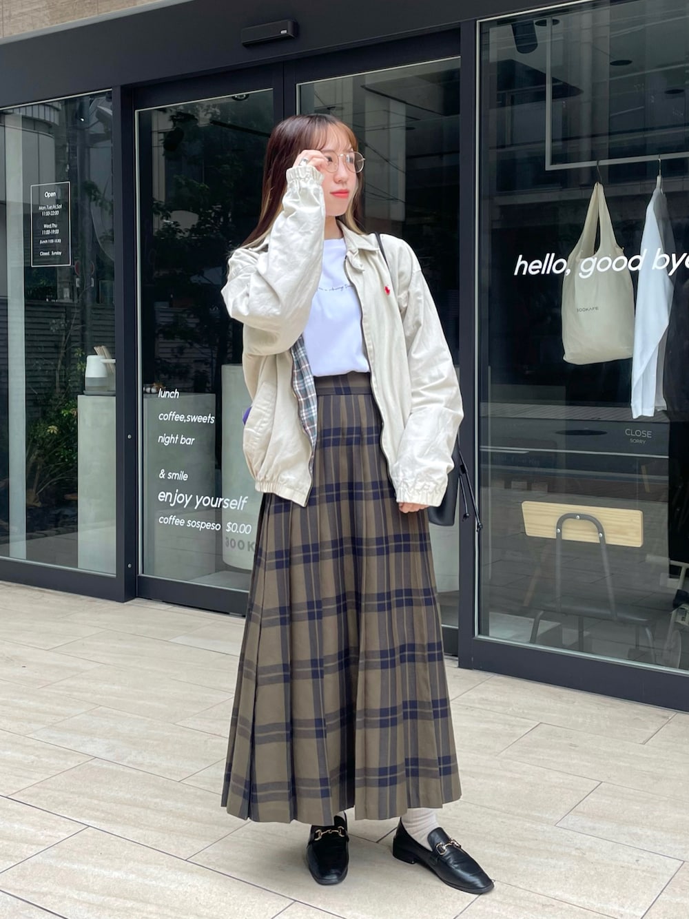 bitaのローファー「柔らかく履きやすいフェイクレザーゴールドビット付きローファー」を使ったコーディネート