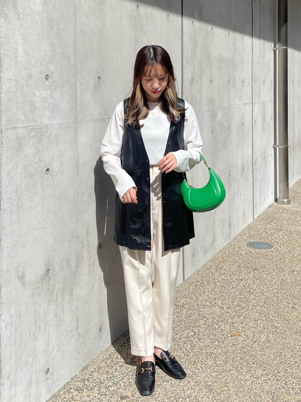 ご覧いただきありがとうございます🐱 【おしゃれに見える春夏モノトーンコーデを教えて!】 腕のカットアウトが春夏らしいデザインのカットソー🫶🏻 ベストと合わせてきれいめモノトーンコーデにてみました🌱