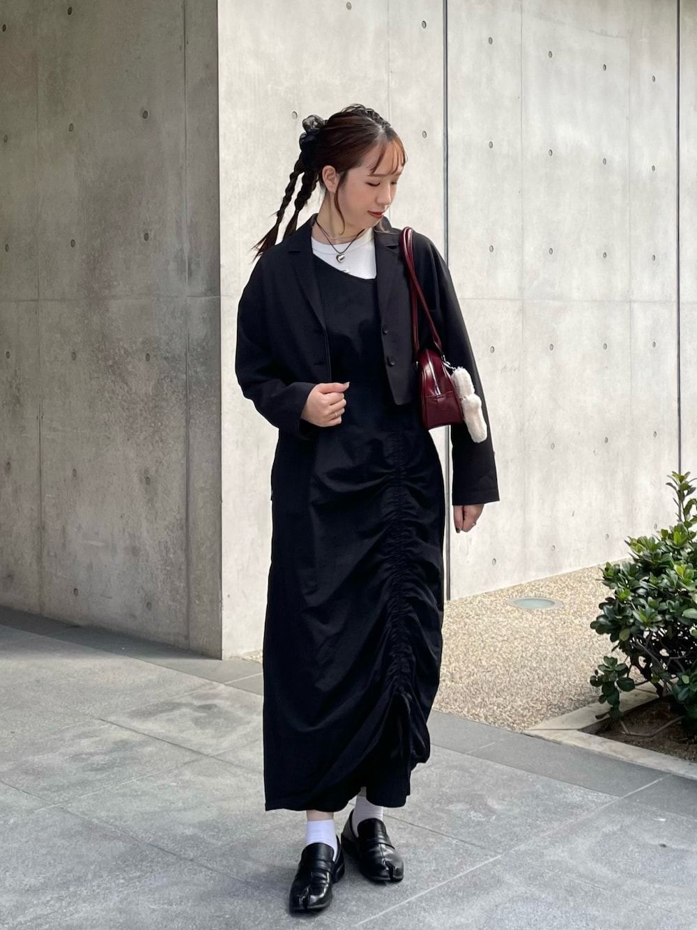 大人っぽくブラックコーデ♡ カバンはワインでよりシックに🍷
