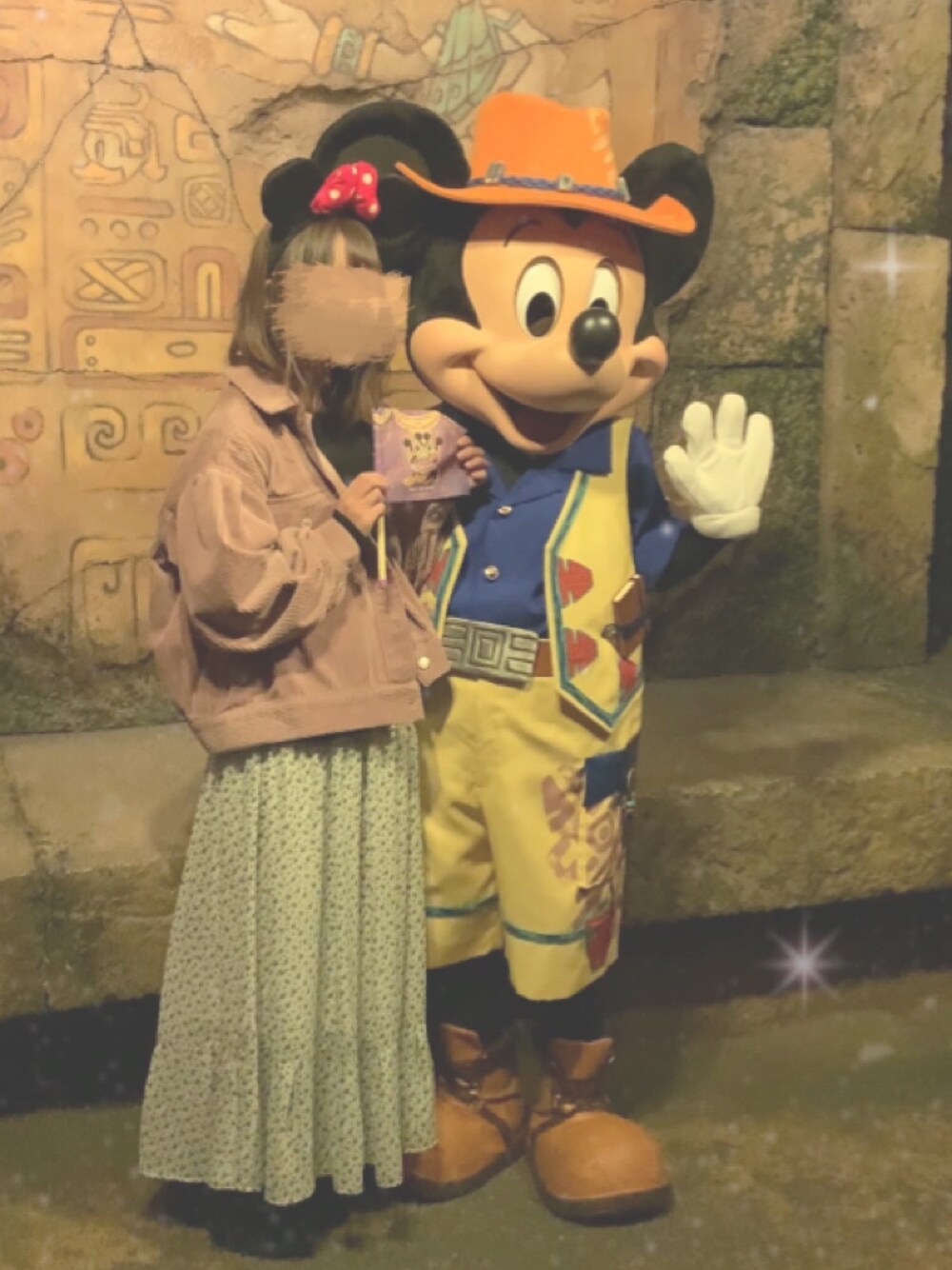 ミッキーに会ってきました☺︎ 日中はまだ暖かいのでニットに上着でちょうどよかったです◎