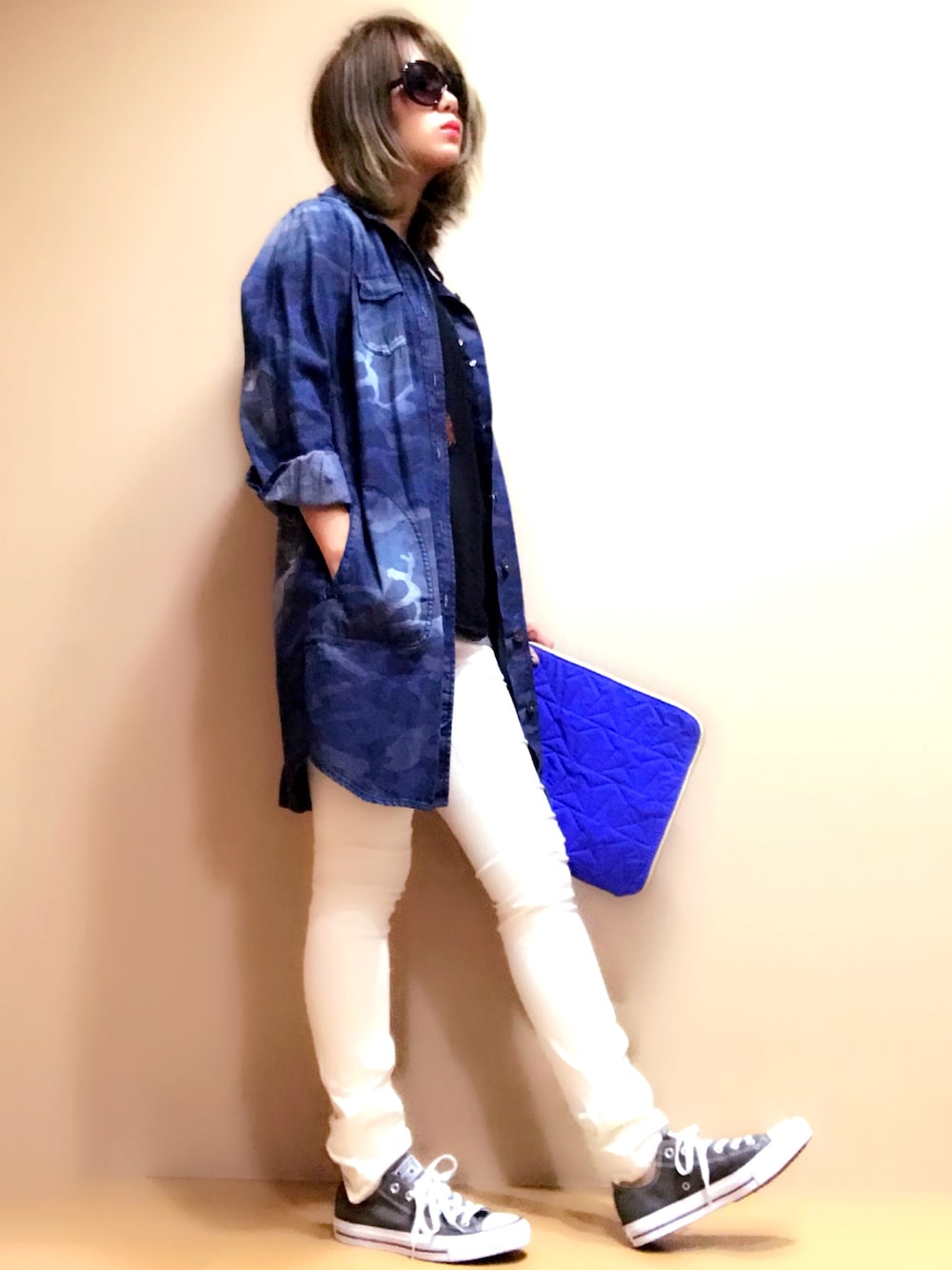 昔の服ばっかり引っ張り出してきました😅 迷彩のシャツワンピはお気に入り✌︎
