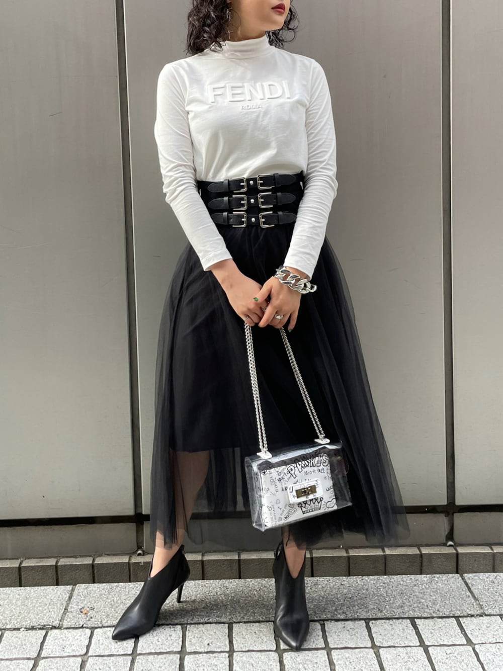 . . Instagram▷▷@narcissus_yumi _________________________________ チュールの可愛さとコルセットベルトの ハードさで甘辛MIX❤️ 秋に連れてロンTはマストアイテム✨