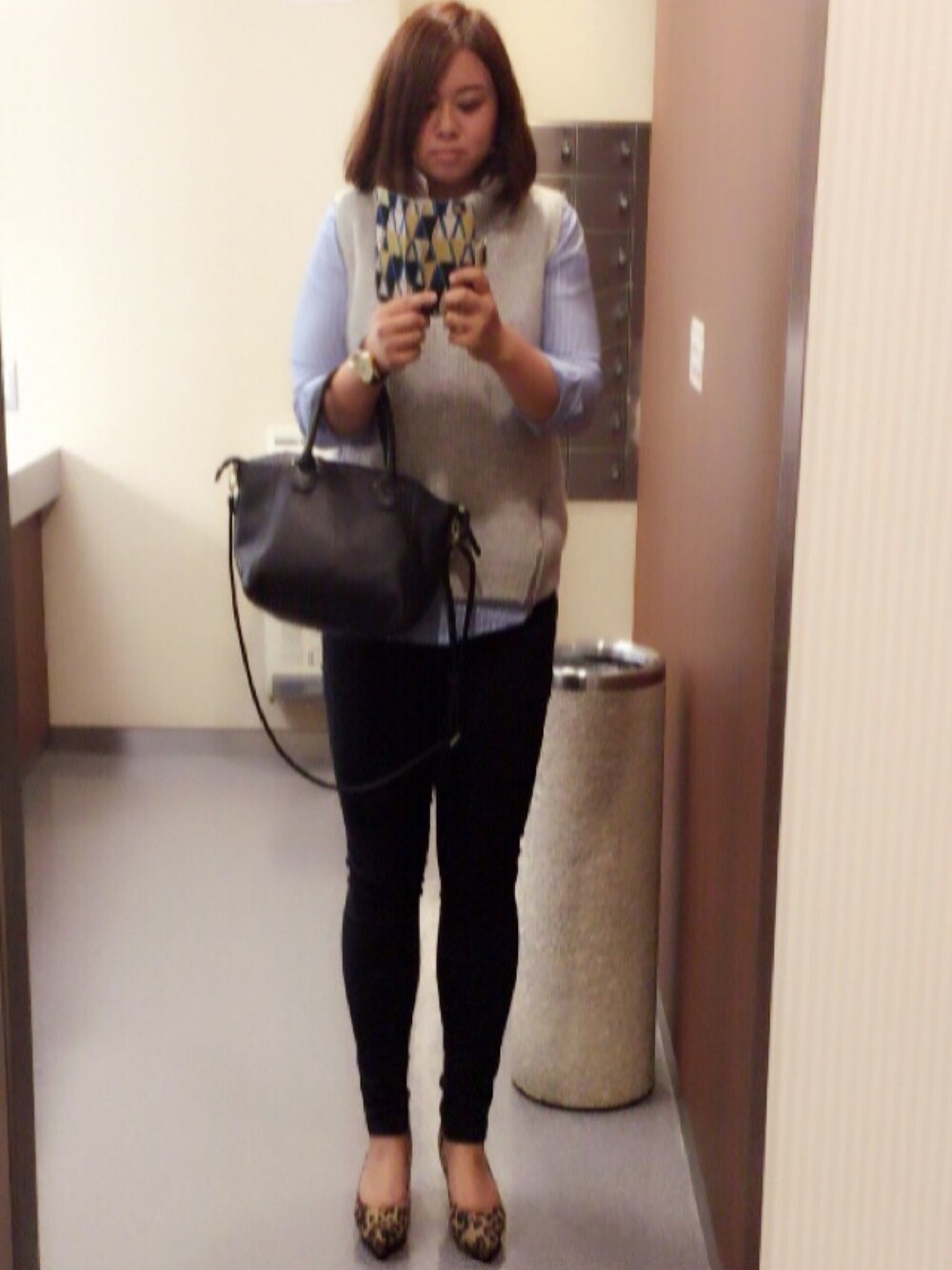 ちょい肌寒い感じだったので、ニットベストにしてみました。