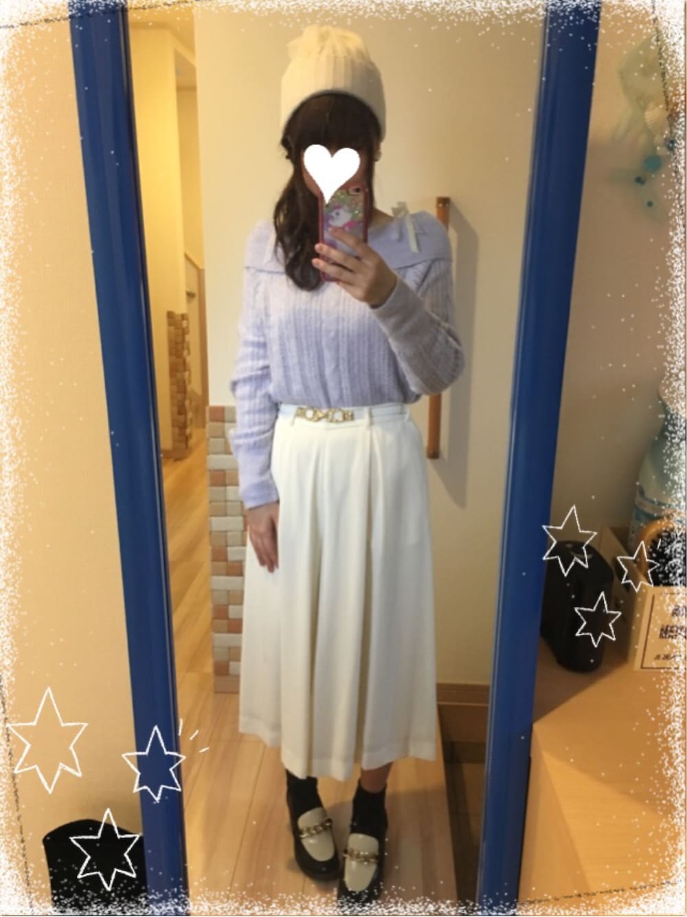 レースのニット帽が珍しくて購入したので、ニットに合わせてコーデしてみました✨ なかなかバランスが難しいですね(>人<;)