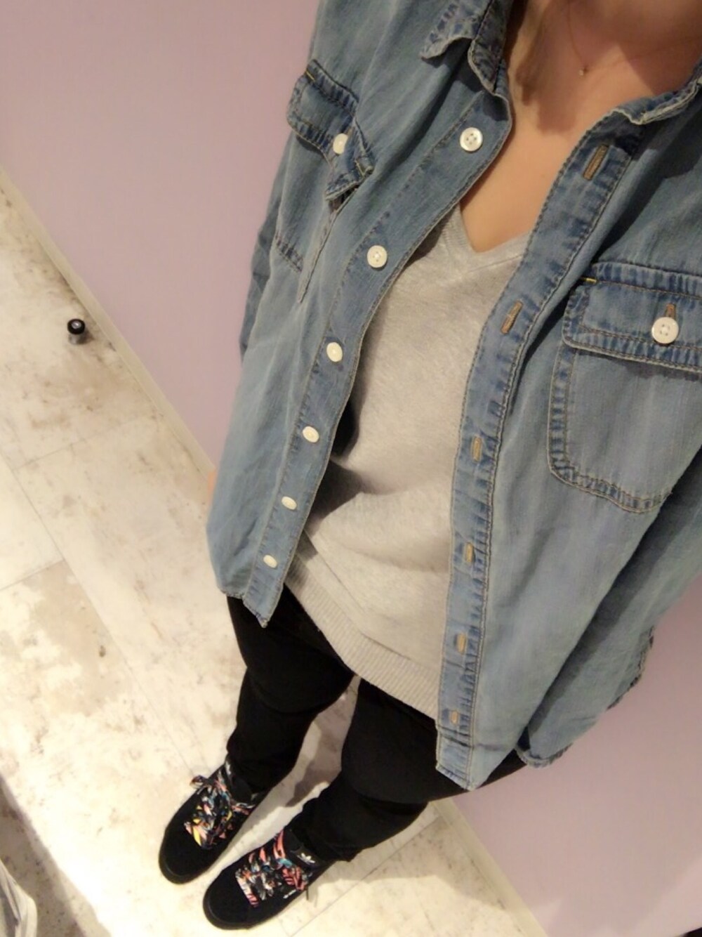 アディダスのスニーカーはお気に入り♡ 紐が可愛くて一目惚れ。 しまむらで黒スキニーは900円安かったから購入。