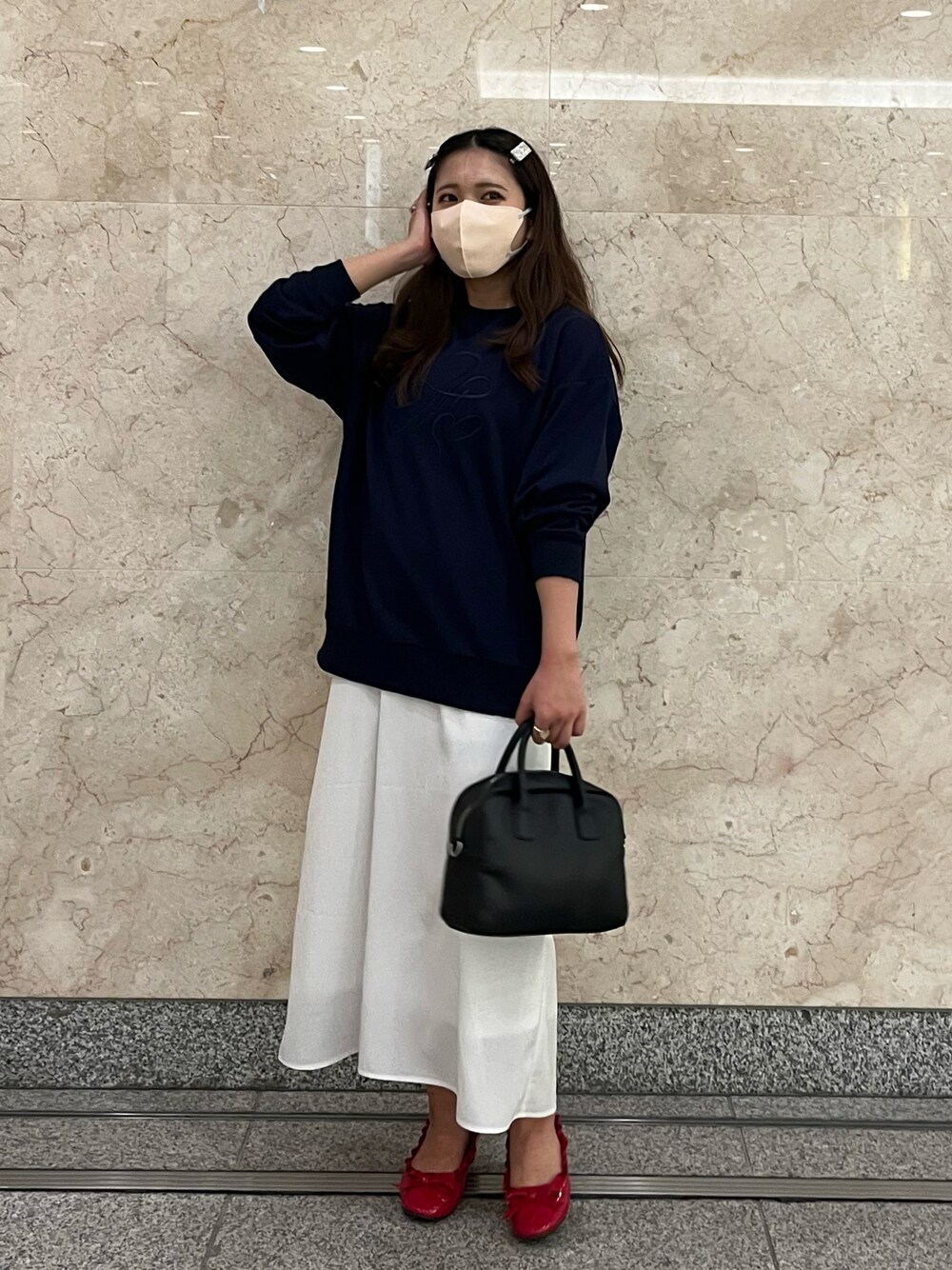 153cm coooode👜❤️ ◼︎le coeur Mlogo sweat(navy) ◼︎lily white delicate set up''op ver.''(Ssize) ◼︎frill bloom ballet shoest(red) 良かったらインスタきてください🥿❤️ @__vaaaa @miro_amurette