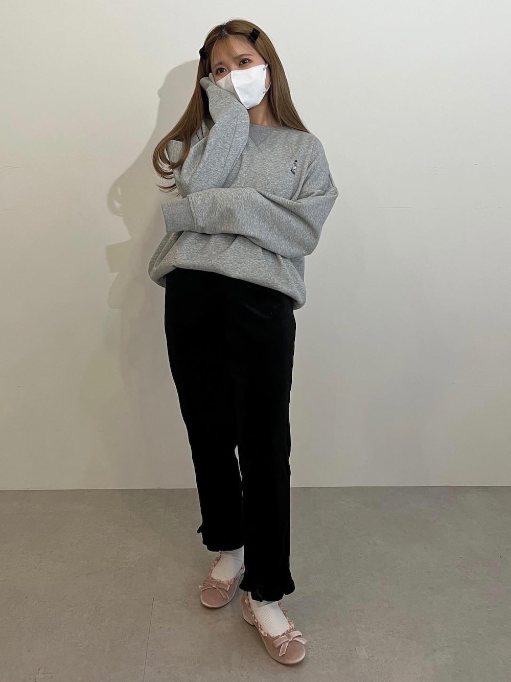 153cm coordinate🎀🎀 ゆるゆるスエットにベロアパンツにベロアシューズ🫶🏻寒いと毎日スエット着たくなる🥶💞 インスタも良ければきてください👱🏻♀️ @__vaaaa @miro_amurette