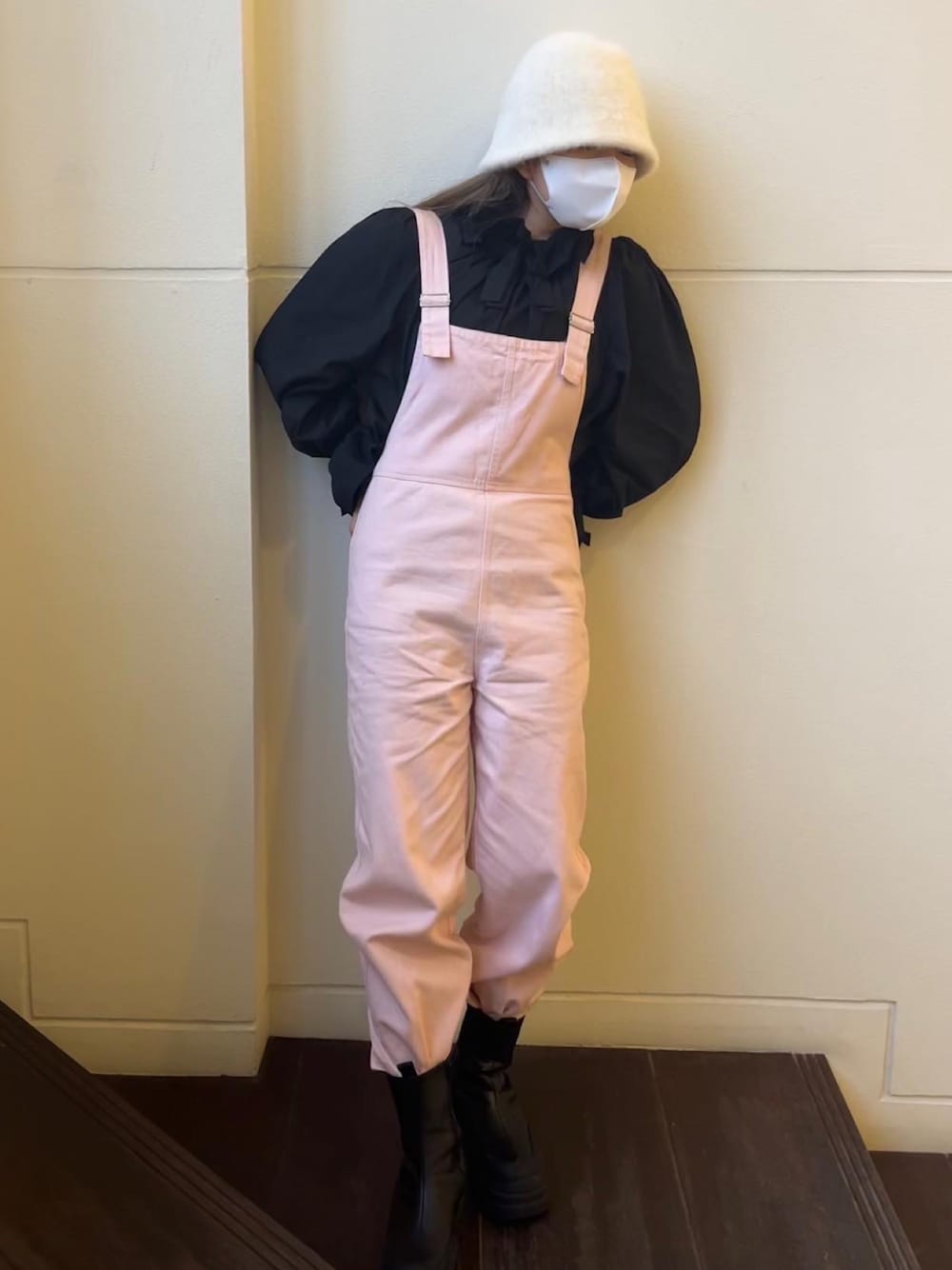 153cm coooode🎀🖤 お気に入りピンクサロペットを甘くなりすぎないようにブラックのブラウスと合わせて👱🏻♀️ ファーのバケハもお気に入り✔︎✔︎✊🏻 良かったらインスタもきてください🫶🏻 @__vaaaa @miro_amurette