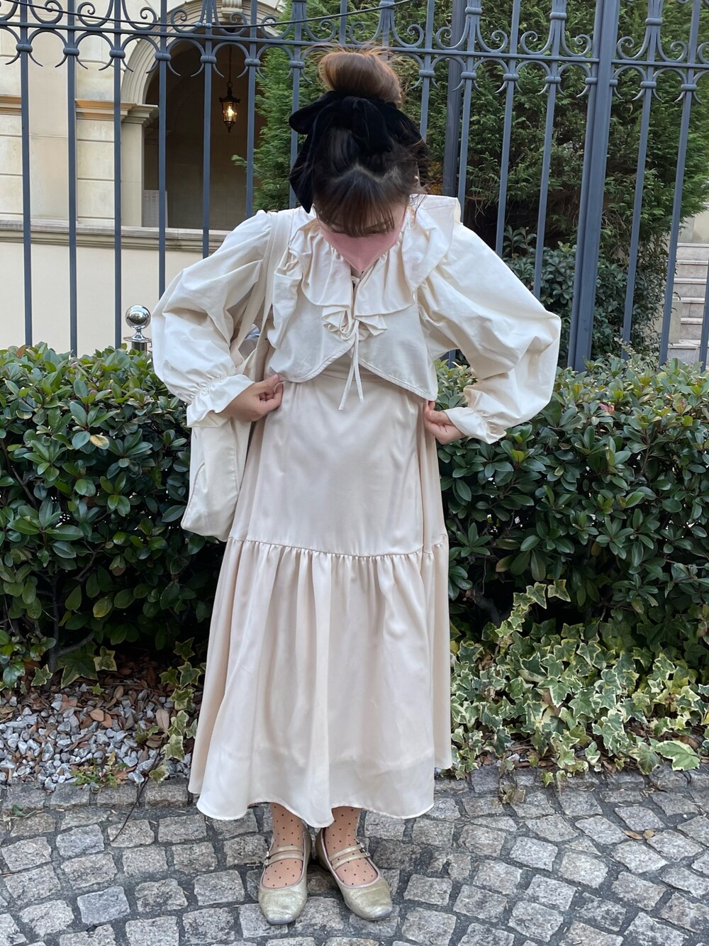 153cm coordinate🐻❄️🥖🎀 gm☀️🗽 ご覧いただきありがとうございます🗽 ベージュのワントーンで揃えたコーデ🫶🏽 万能なボレロブラウスもティアードのワンピースもお気に入り✔︎ 良かったらインスタもきてください🧌 @__vaaaa @miro_amurette