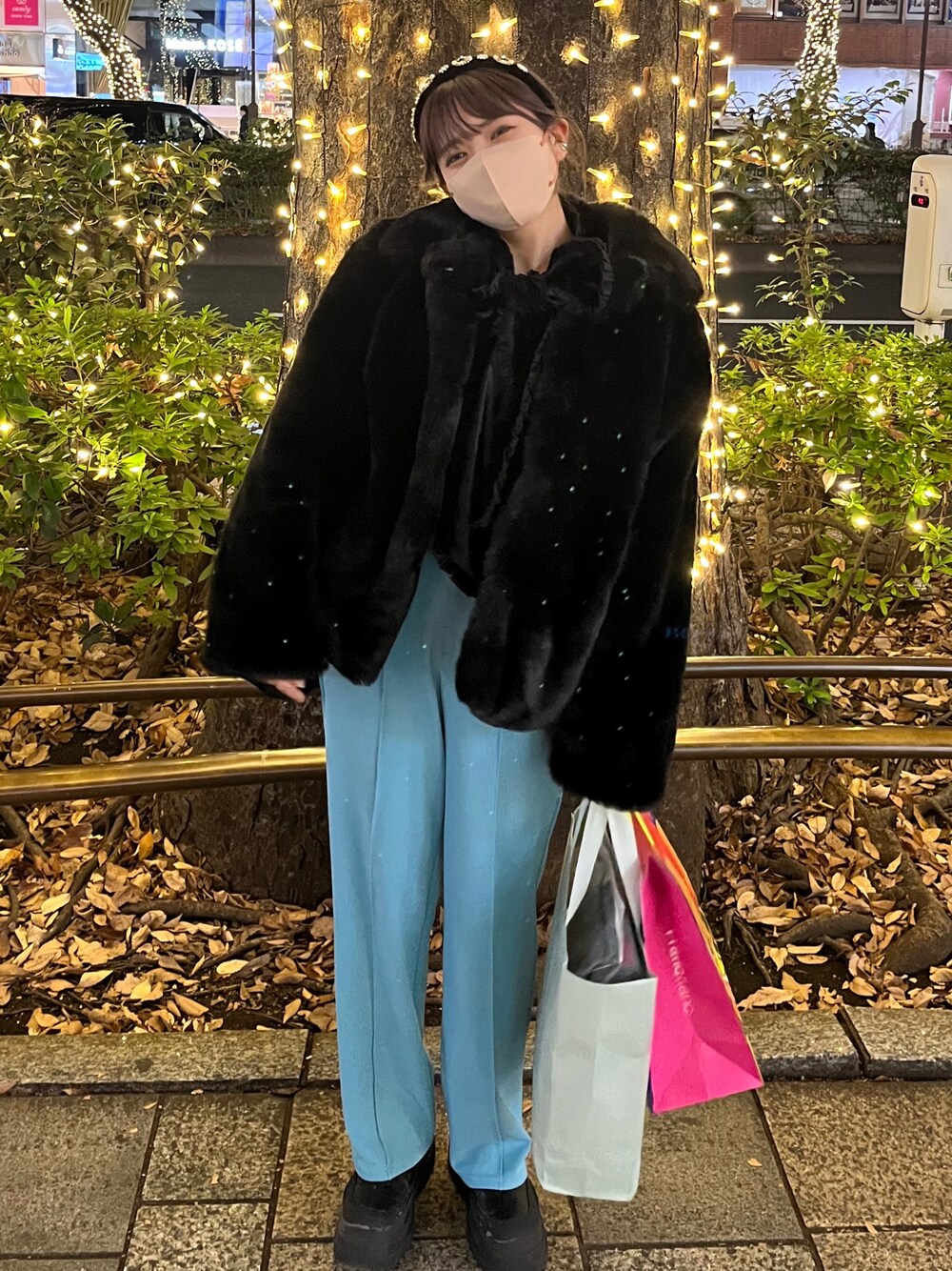 153cm coordinate🎄✨ gm~ ご覧いただきありがとうございます✌︎ カラーパンツをブラックでまとめたコーディネート✔︎✔︎ベロアのリボンタイにファーコート合わせて、コートからリボンタイだけ出しても可愛い🎀 良かったらインスタもきてください! @__vaaaa