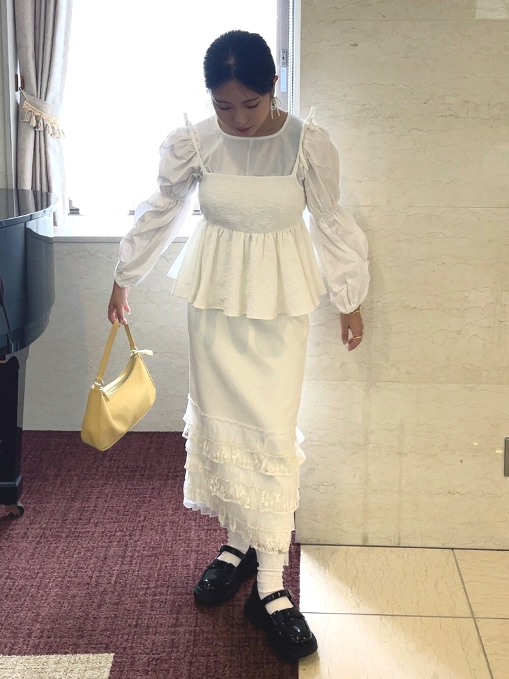153cm coordinate🤍🍽️🏢 gm〜 ご覧いただきありがとうございます! オールホワイトコーデ✔︎ ペプラムもタイトなスカートと合わせてバランス良く🙋🏻 instagram:@__vaaaa