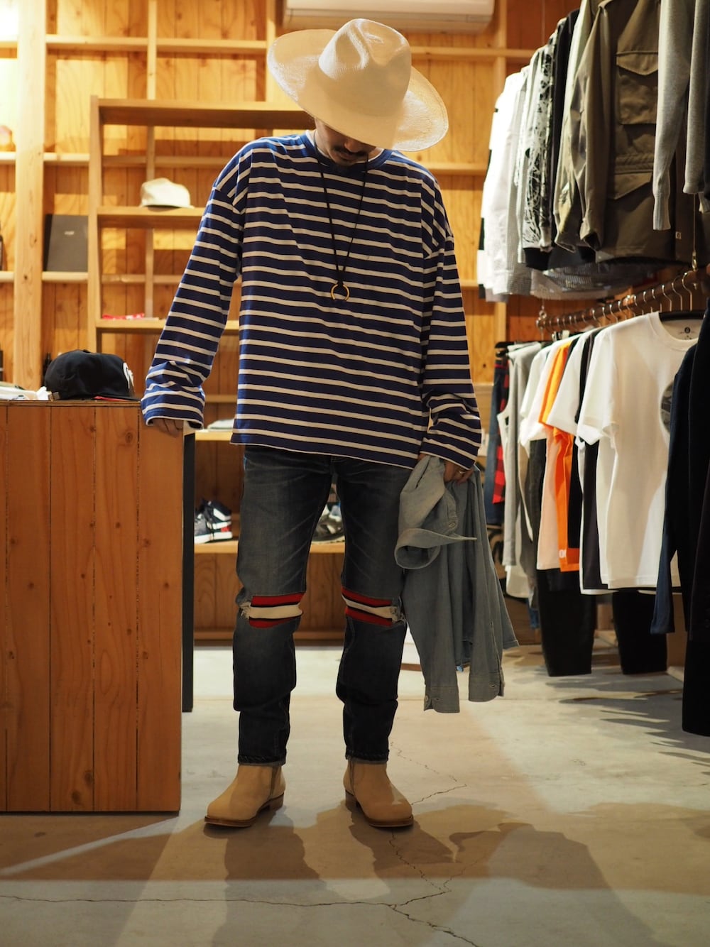 FACETASMUNUSEDN.HOOLYWOODUNUSEDWHIZLIMITEDこの画像から似たアイテムを検索できます1,15935お気に入り (4)351権藤裕輝さんへのコメントNO COMMENTコメントはスマートフォン用アプリからご利用できます着用アイテムFACETASMFACETASMデニムパンツ (ブルー系)デニムパンツ探すZOZOTOWNで探すUNUSEDUNUSEDブーツ (ベージュ系)ブーツ探すZOZOTOWNで探すN.HOOLYWOODN.HOOLYWOODネックレス (ゴールド系)ネックレス探すZOZOTOWNで探すUNUSEDUNUSEDTシャツ/カットソー (ブルー系)Tシャツ/カットソー探すZOZOTOWNで探すWHIZLIMITEDWHIZLIMITEDハット (ホワイト系)ハット探すZOZOTOWNで探す権藤裕輝のデニムパンツを使ったコーディネート4ブランドミックス。コメント1件を表示2017.3.29着用ブランドFACETASMUNUSEDN.HOOLYWOODWHIZLIMITEDタグ#春#ボーダートップス#デニムパンツ#ツバ広ハット#ブーツモデル情報男性・170cm・37歳ロングヘアー似ているアイテムFACETASM × デニムパンツUNUSED × ブーツN.HOOLYWOOD × ネックレスUNUSED × Tシャツ/カットソーWHIZLIMITED × ハット権藤裕輝@valleygon / 170cm / MEN / ミディアムヘアー0コーディネート0フォロワー注目のコーディネートアプリでもっと見るもっと見る