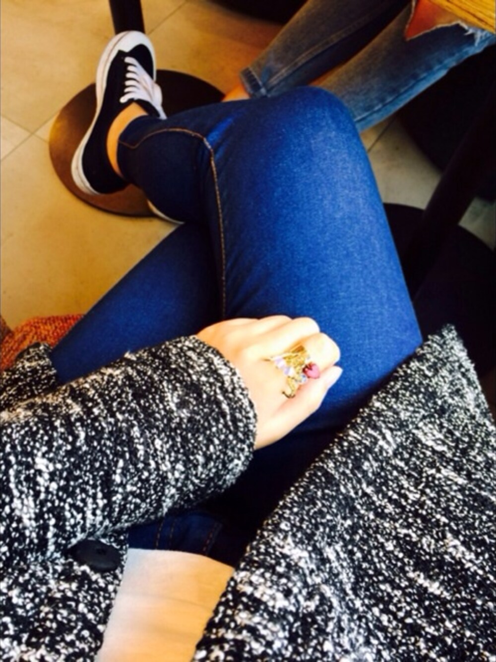 보카시본딩자켓/슬라브티/데님팬츠/아디다스 허니로우