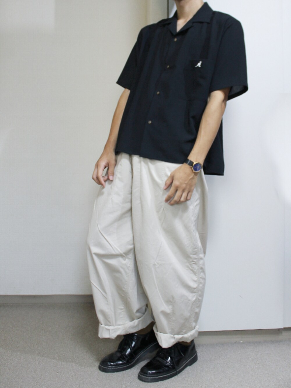 こんにちは!ばんすーです!😀 今日はモノトーンコーデをくみました!😎 シンプルで絶対に全体のバランスがとれるので朝時間が無い時はよくモノトーンコーデになります🤭 オープンカラーシャツが着丈が短めなので腰履きのパンツと合わせると足が長く見えます!なので僕みたいな低身長さんはこういう合わせ方試してみてもいいと思います!🥰 よければ、いいね、お気に入り、フォローお願いします🙏🙇