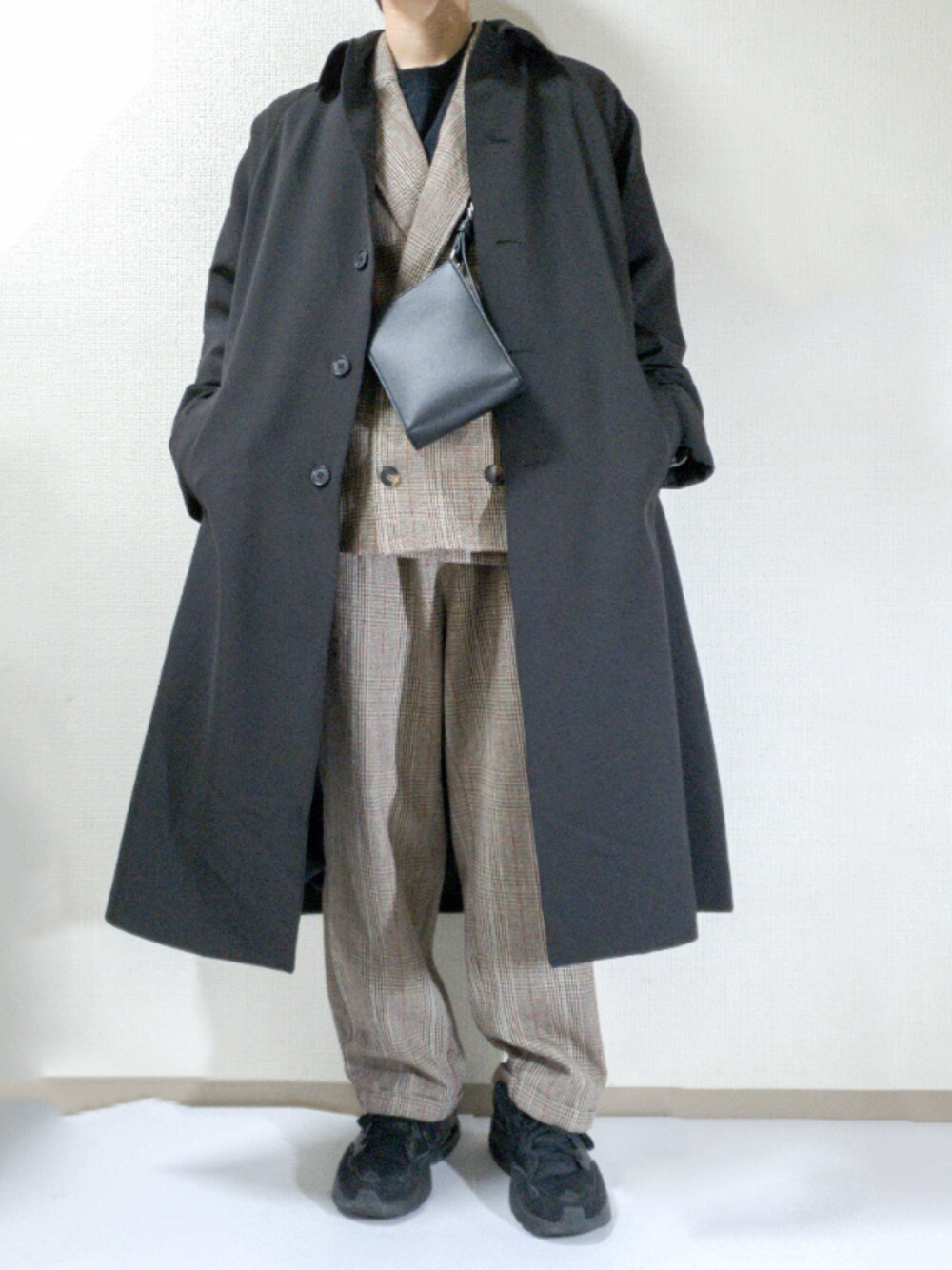 yuuuのステンカラーコート「2way Over Soutien Collar Coat - 2way オーバーステンカラーコート」を使ったコーディネート