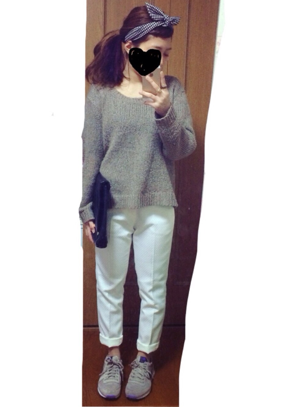 ニット/H&M クロップドパンツ/GU スニーカー/NIKE クラッチバッグ/F21
