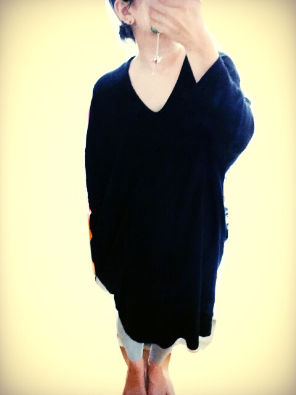もう、ほんと どシンプルに。 クロにはグレーだよねってことで、 グレーのレギンスを。