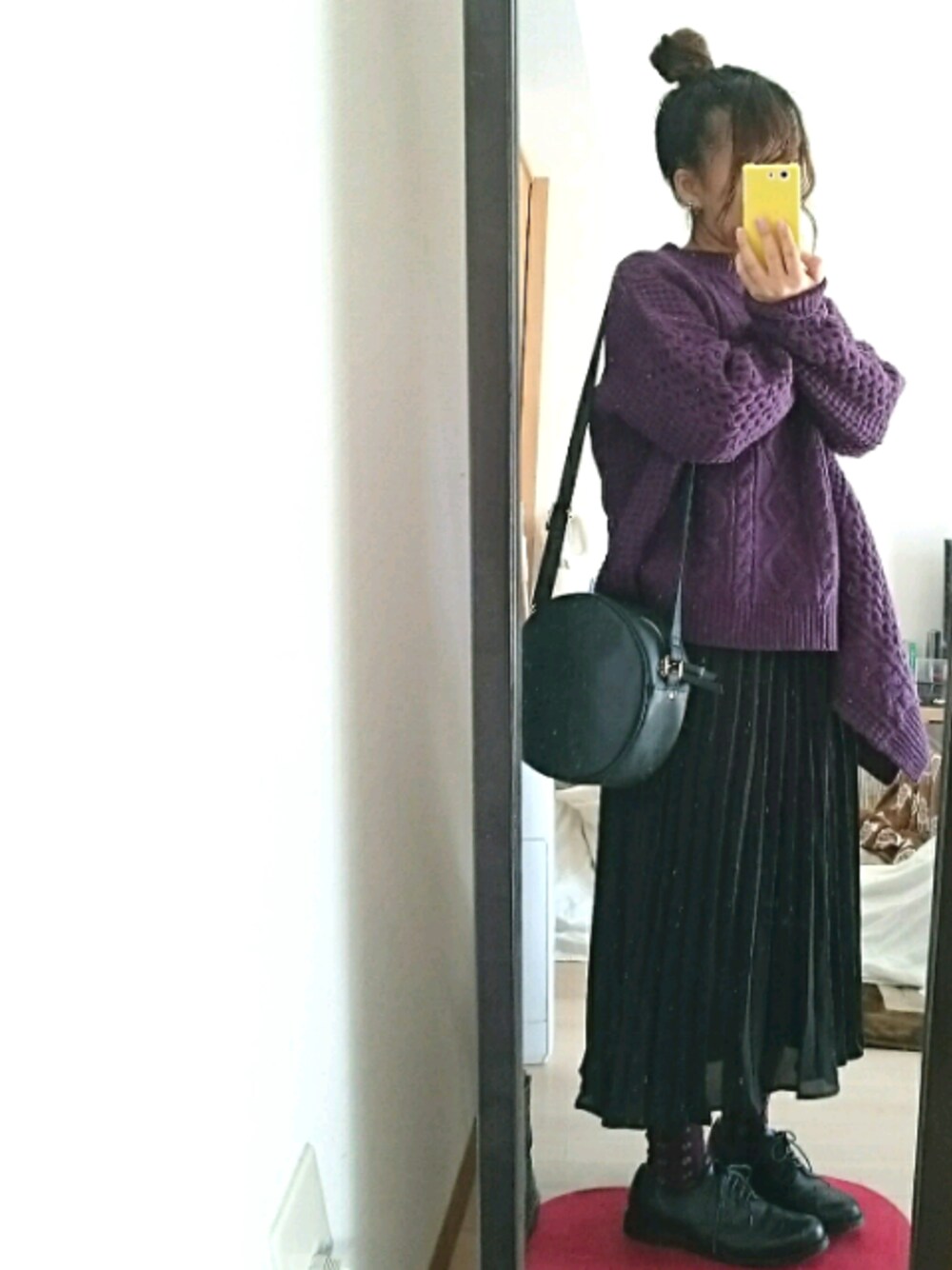 ニットの形☺ プリーツスカート→GU サークルバッグ→しまむら