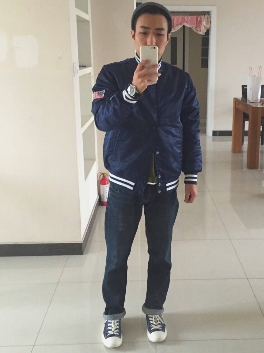 Vanlissのブルゾン「Champion JS別注 NYLON SATIN ベースボールジャケット #○」を使ったコーディネート