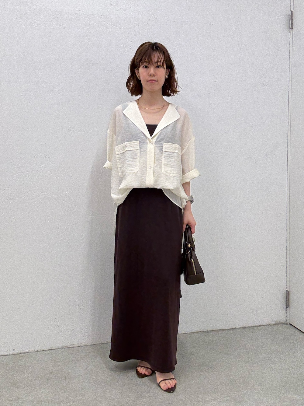 Minami(COLLAGE)のシャツ/ブラウス「ヴィンテージライクラペルカラー半袖シアーシャツ/WEB限定」を使ったコーディネート