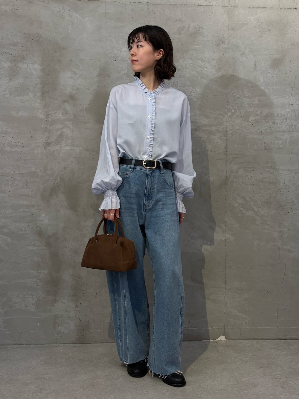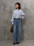 甘くなりがちなフリルアイテムですがデニムで大人っぽくしました。ブラウンのバッグを差し色にしました。 シャツは軽くて着心地が良いです◎ ※シャツ フリーサイズ ※パンツ PSサイズ