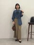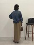 カジュアル見えするデニムシャツですが、ボウタイ付きでキレイめにも使えます◎ 柔らかい生地で着心地も良く、重ね着もしやすいです。 ※スカート サンプルのため1サイズ着用。普段は0サイズです。 ウエストが総ゴム✖︎ベルト付きなので、痩せ型の方にもおすすめです◎ スリットが入っていてほどよい抜け感と足捌きが良いです◎