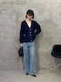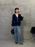 マットな質感×メタルボタンがおしゃれ見えするカーディガンです。 Vネックなのでインナーはスクエアネックだと首周りがスッキリ見えします。 ※デニム PSサイズ着用 痩せ型なのでウエストで下がってしまうため低身長サイズのPSがちょうど良いです