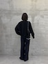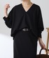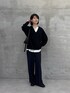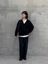 セレモニーでも使えるアイテムでカジュアルスタイルを組んでみました。 取り外しができるボウタイ付きのブラウスなので、普段はボウタイを外して首元を開けてラフな印象に。ポンチのVネックを合わせればまだ肌寒い春にもぴったりなコーデです。 ※ パンツはサンプルのため1サイズを着用していますが普段は0サイズです