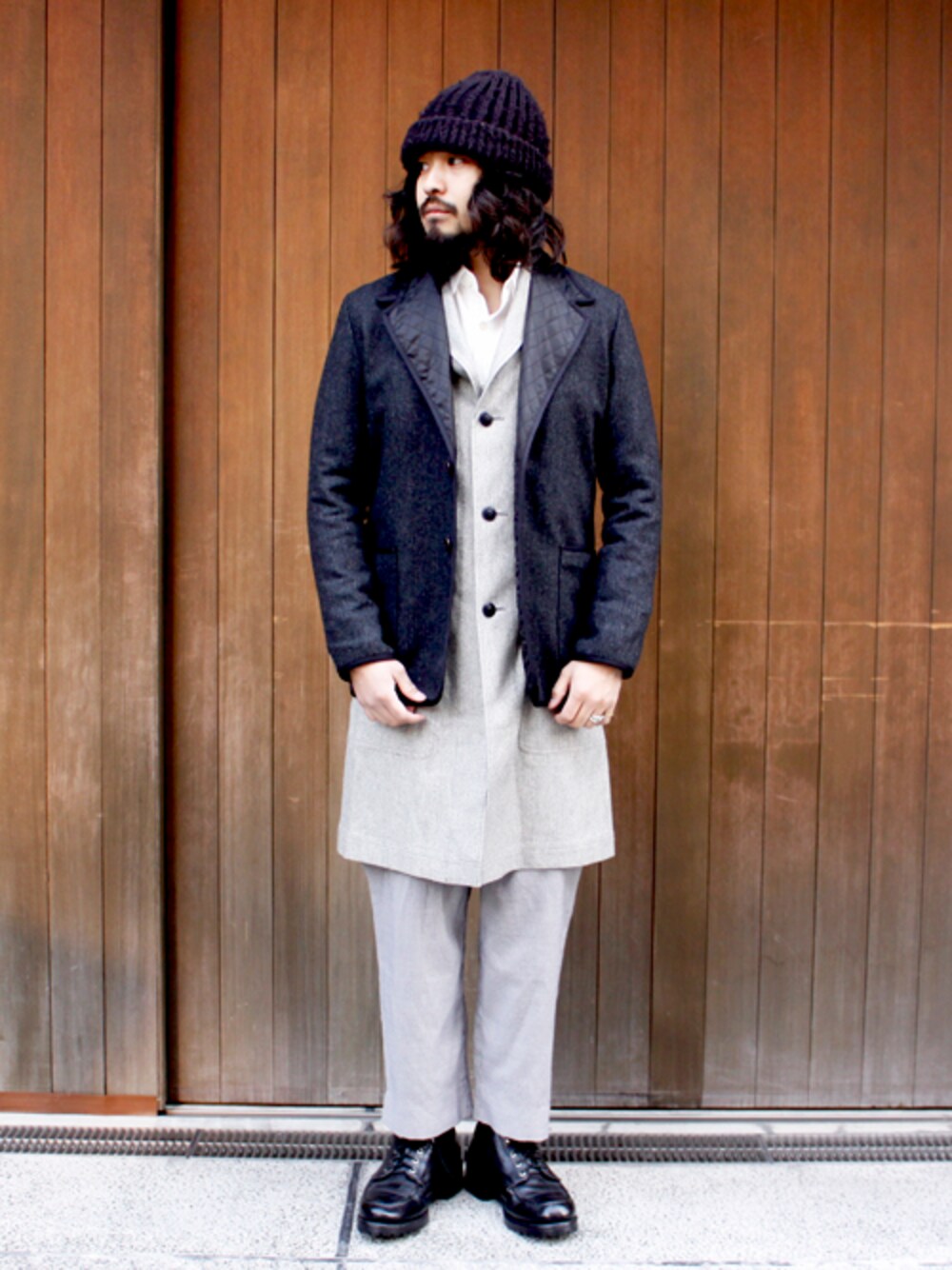 BLACK CHAMBRAY ATLIER COAT PATTREN01 SIZE1 QUILTING WOOL JACKET BLACK SIZE1 ORDINARY SHIRTS WHITE SIZE1 USED CHECK PANTS USED CHIPPEWA BOOTS