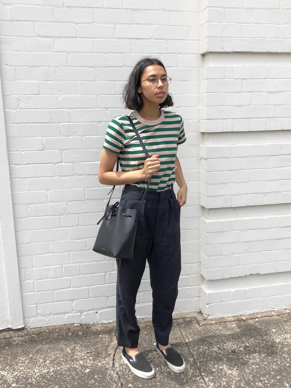 Jackie Pettittのショルダーバッグ「<MANSUR GAVRIEL(マンサー ガブリエル)>MINI BUCKET BAG■■■◆」を使ったコーディネート