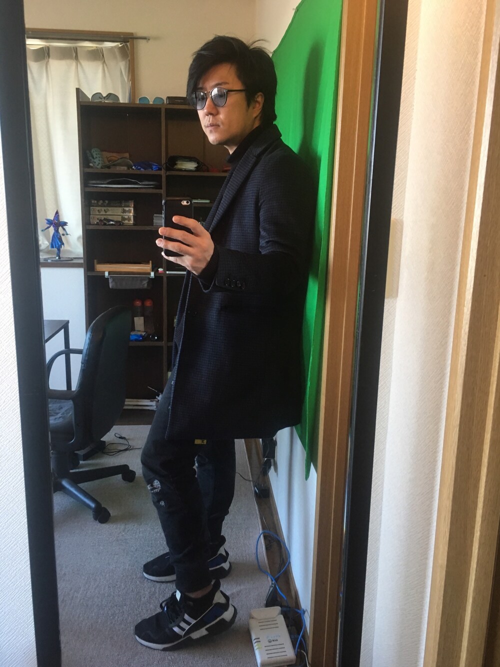 黒と青の千鳥チェスターコートで、モダン&スポーツに