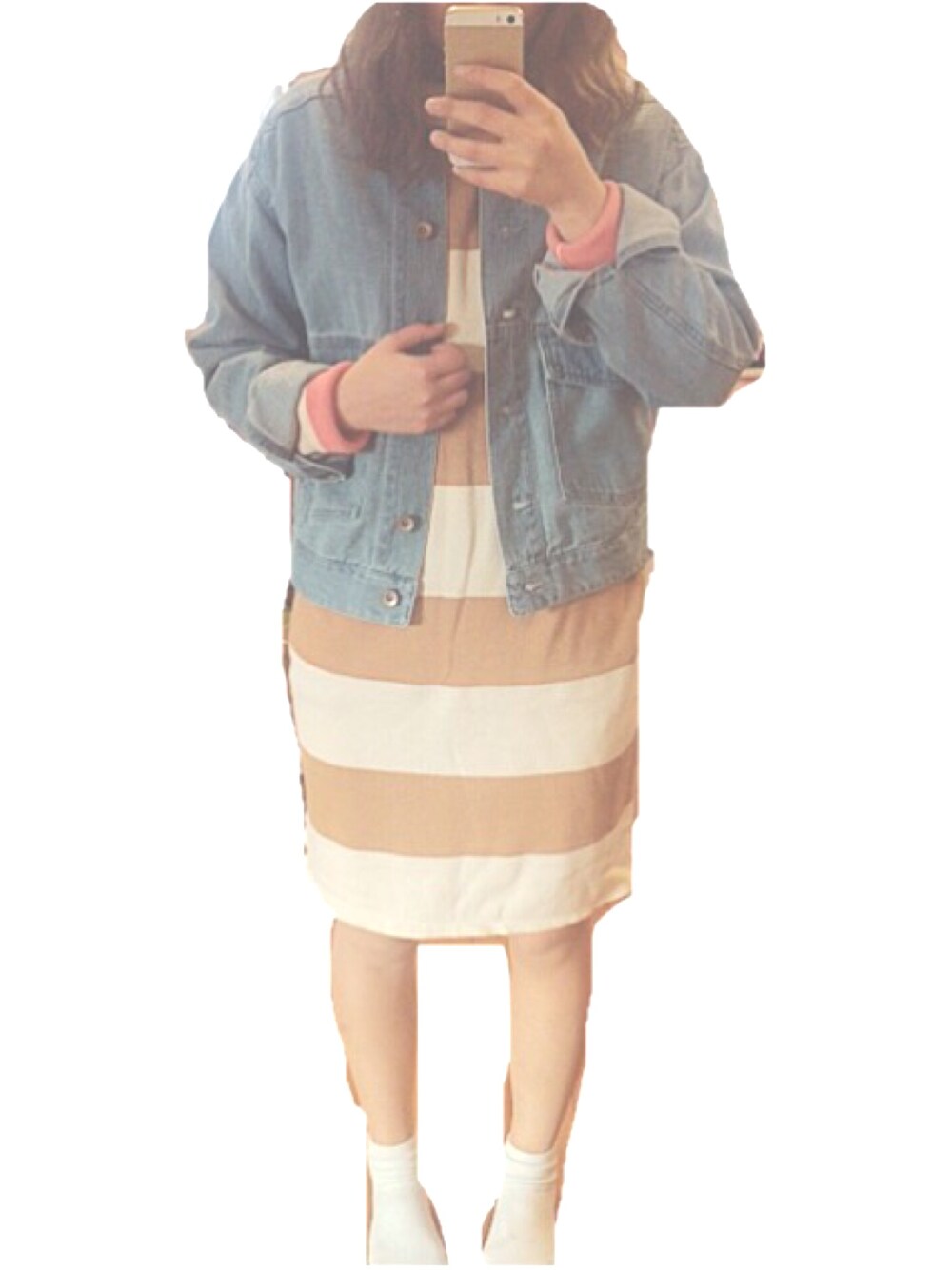 ワンピースの袖のピンクがお気に入り。 少しずつ暖かくなってきてるけど朝夕まだまだ寒いからジージャン羽織るとちょうどいい◎ もう少し暖かくなったらワンピース一枚で着たいな