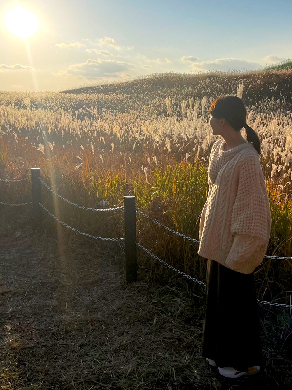奈良のススキ綺麗だったな〜🌾 ニットだけでいられる気温が1番好き。