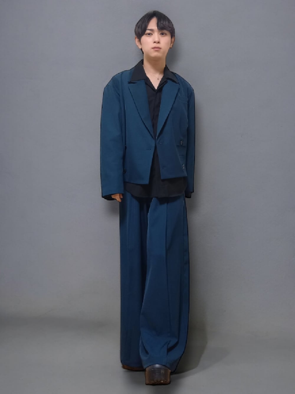 いつもご覧いただきありがとうございます! ダークブルーのジャケットのセットアップです。ショート丈なのでレイヤードも簡単にできます。モードな雰囲気にしたい時もオススメの一着。 良かったらいいね、save、フォローしていただけると嬉しいです!