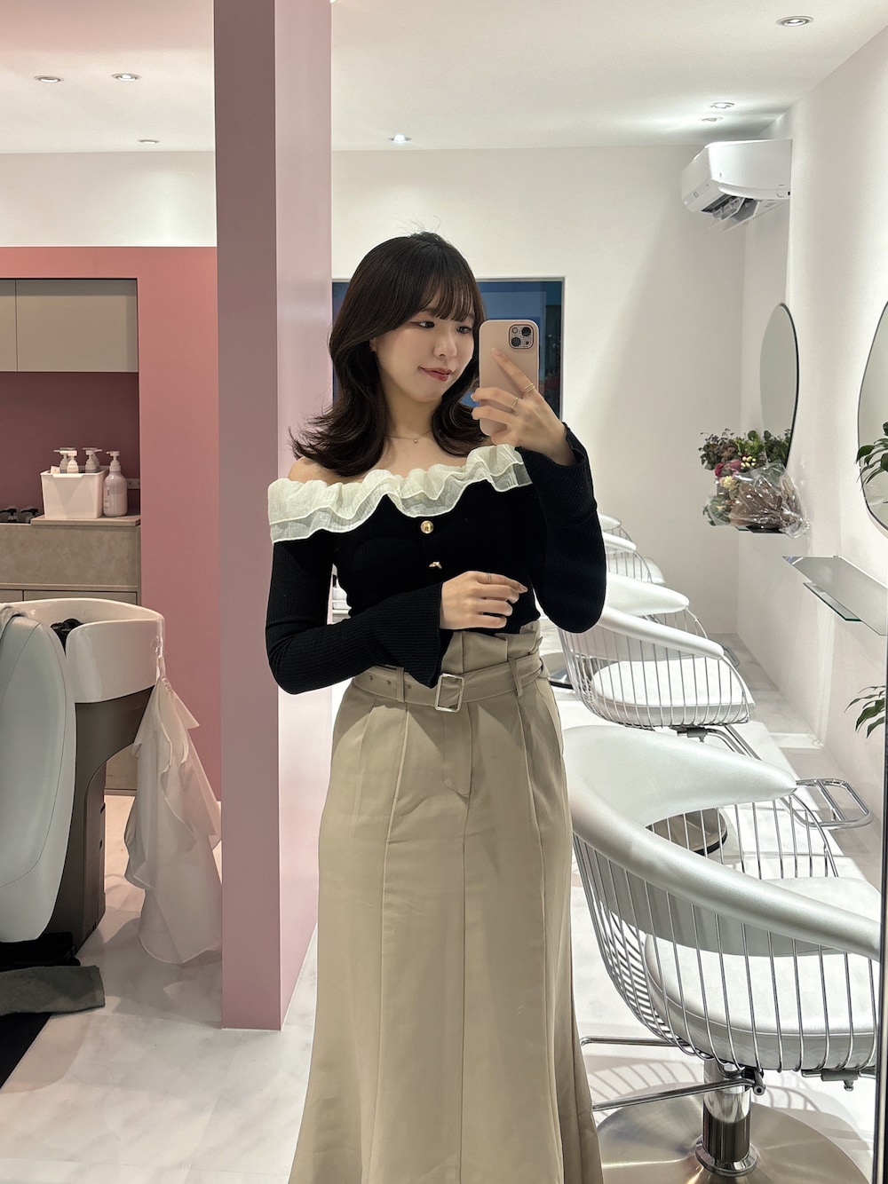 veil39のスカート「細ベルト付きハイウエストタイトスカート」を使ったコーディネート