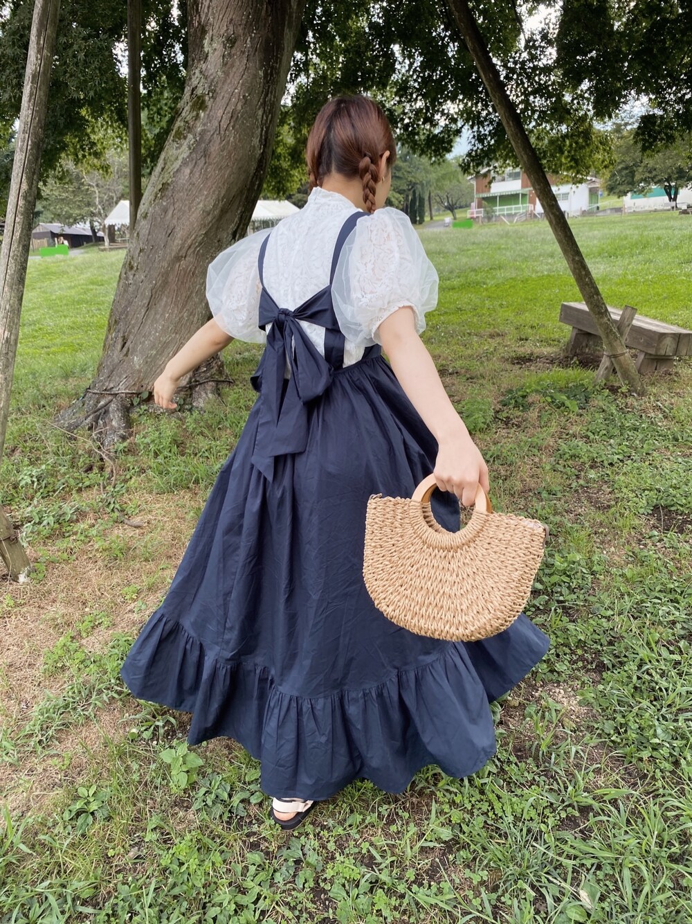 fifthのワンピースコーデ( *´꒳`* ) たかあしあかりちゃんがきてたのを 見て可愛すぎて即購入しちゃいました٩(๑>∀<๑)۶ 後ろのリボンが可愛いです( ¨̮ ) 夏が終わる前に着れて幸せはっぴー!⸜🌷︎⸝