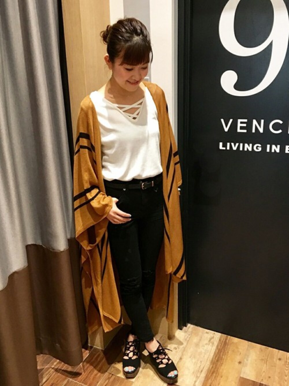 VENCE EXCHANGE LADIES STAFFのカーディガン/ボレロ「ストライプポンチョアンサンブル」を使ったコーディネート