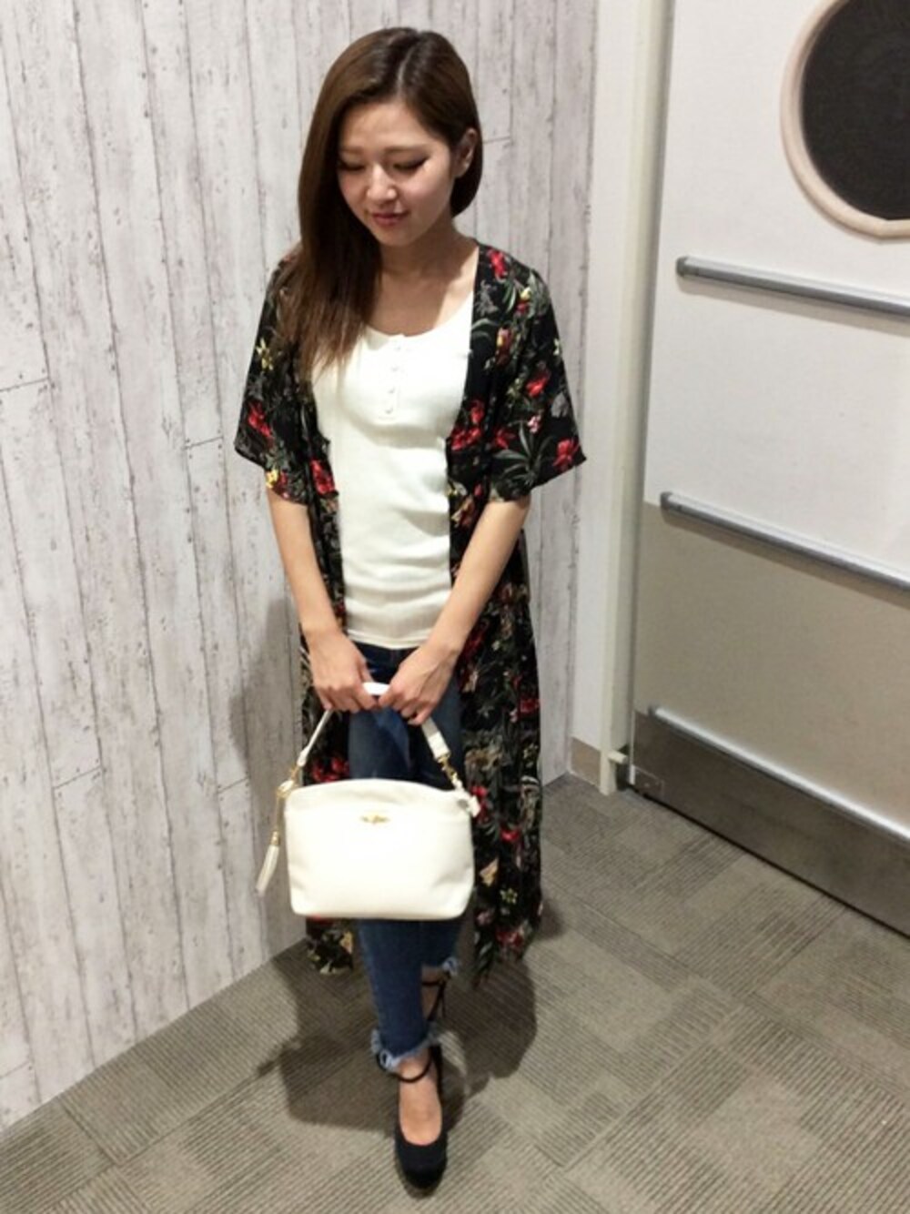 VENCE EXCHANGE LADIES STAFFのカーディガン/ボレロ「Vネック花柄シャツディガン 」を使ったコーディネート