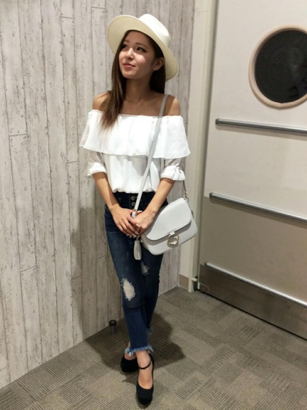 トレンド性はもちろんのこと、着回しやすさも備えた無地のオフショルプルオーバー! ふんわり可愛いフリルに、袖口のギャザーリボンが可愛すぎます。 夏コーデにぴったっりに、小物達もホワイト色で合わせると◎