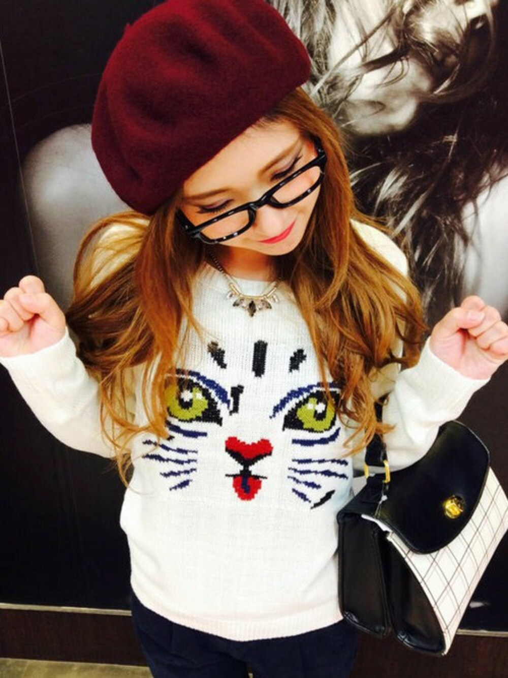 ネコ模様の存在感たっぷりのニット。 1枚着るだけで、スタイリングの主役に☆ ハイウエストのスカートやショートパンツでガーリーなコーデがオススメ!!