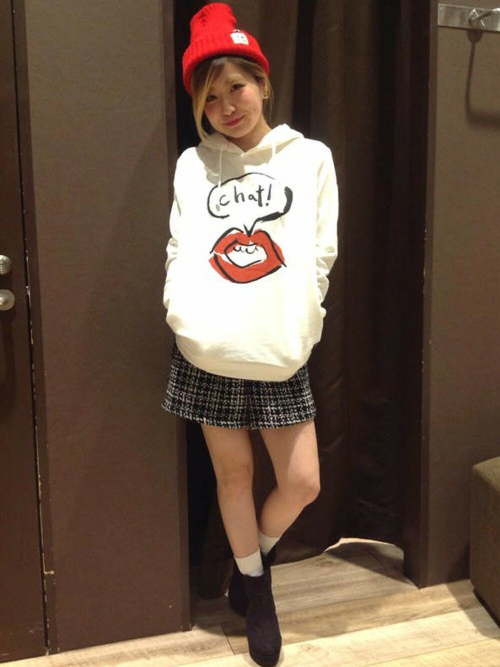 VENCE EXCHANGE LADIES STAFFのパーカー「chat!ptウラケPK 」を使ったコーディネート