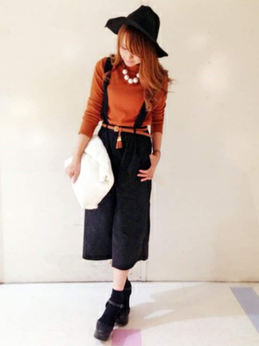 ガウチョパンツは、サスペンダーが着いてるだけで印象もグンと変わりますね☆ 普通のガウチョパンツは持ってる!なんて、オシャレ女子も必見です(((o(*゚▽゚*)o))) もちろん、サスペンダーの取り外しも可能!! 今回は、今年流行りの"土っぽカラー"を合わせ秋らしくしてみました♡