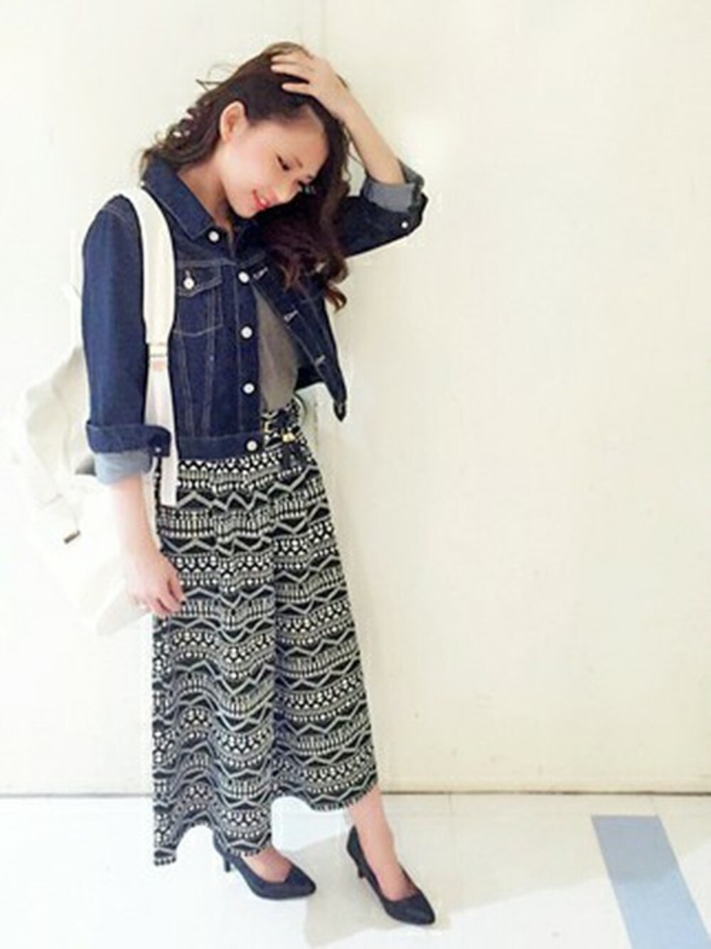 今季注目されている「オルテガ柄」をメインにしたスタイリングです☆ 全体をモノトーンで引締め、デニムで爽やかさをプラスしました(^_-)-☆ ボトムはウエストゴムなのでストレスフリーです♪